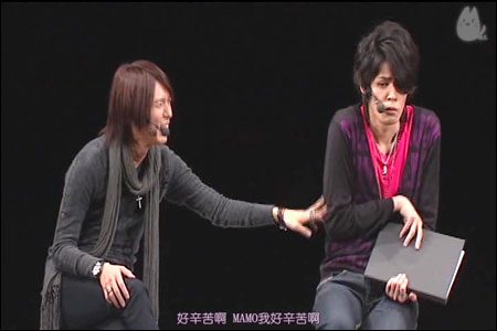 不料浩C因为之前念错了一个fan的名字而怨念mode全开,一边使劲捏mamo的肩膀一边说:“怎么办...我无法振作起来了怎么办TAT”